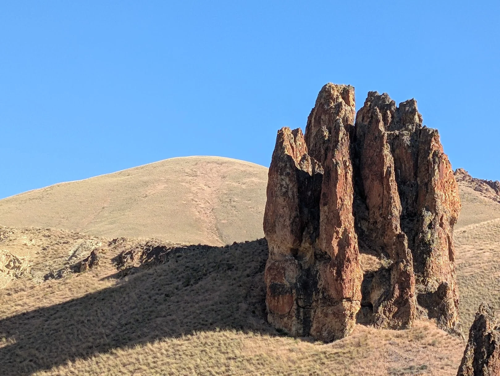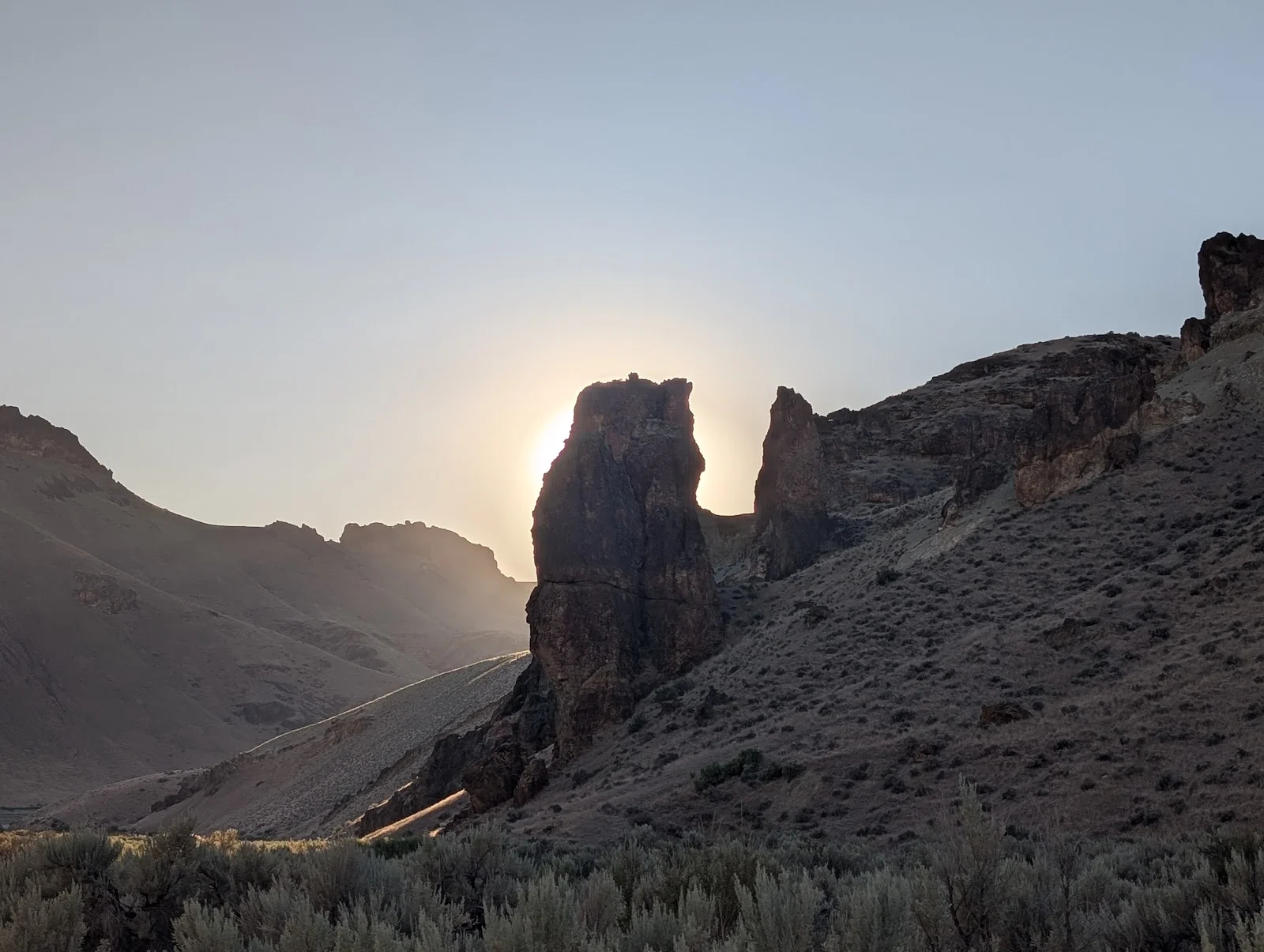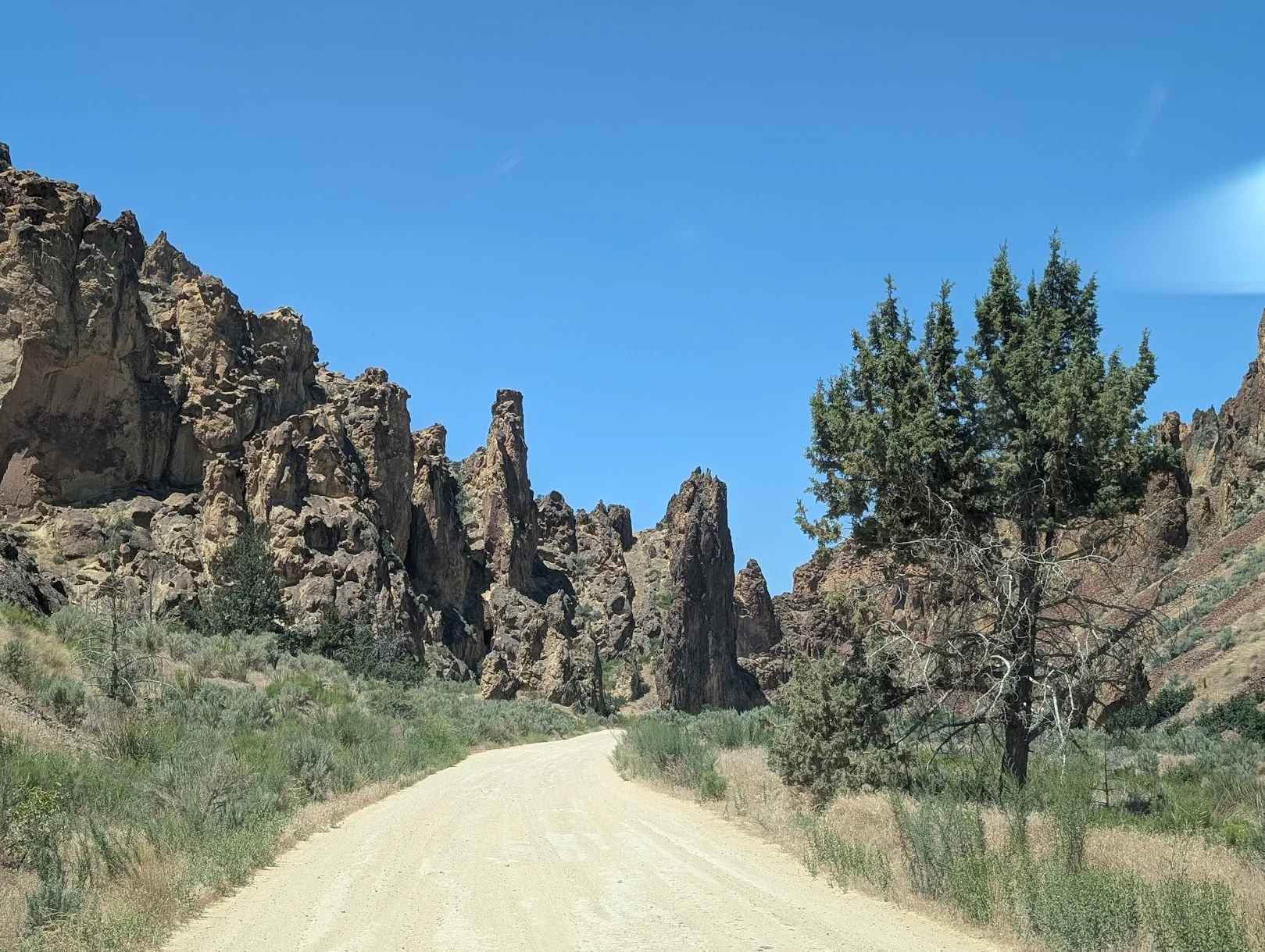 Leslie Gulch in Eastern Oregon has been on my list for a while. The geology is Martian, and at 2.5 hours away, it is close enough for an overnight. My only hesitation was about the weather. It was forecasted to be 100 degrees Fahrenheit! I knew that like my old Odyssey, my new Magma could be unzipped all around to allow maximum airflow and cooling. Plus, after some online digging I discovered a small camping area in Leslie Gulch called Slocum Creek Campground with big metal awnings at each campsite and a picnic table underneath. I also convinced myself that it was a Monday, the 25-mile dirt and sometimes very rough drive from I-95 was a barrier, and the forecast for soaring temperatures would all conspire to keep the masses away. I would be alone like dispersed camping but with shade.